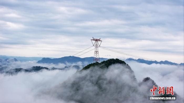 金上—湖北±800千伏特高壓直流輸電工程線路跨越湖北恩施土家族苗族自治州的崇山峻嶺。(資料圖)鄒小民 攝