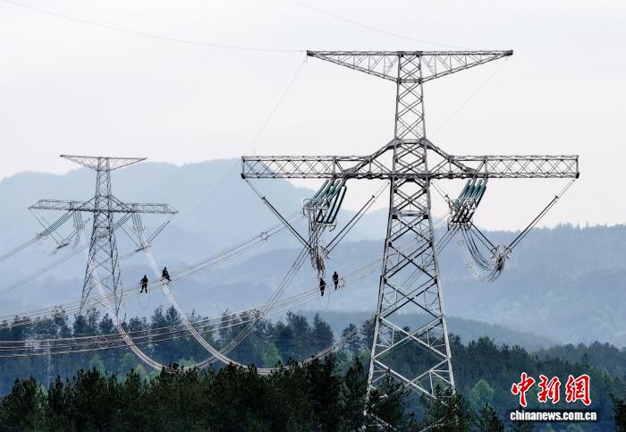 2025年4月,施工人員對金上—湖北±800千伏特高壓直流輸電工程恩施段開展投運。(資料圖)鄒小民 攝