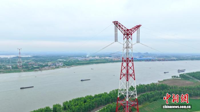 金上—湖北±800千伏特高壓直流輸電工程線路跨越長江,兩座跨江鐵塔高229.2米。(資料圖)汪云龍 攝