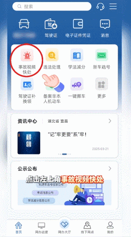 根據視頻快處后臺民警的指引,對事故現場肇事車型、車號、受損部位及雙方駕駛員合影取證照相5張,然后即可撤除現場。(遇高峰期、擁堵路段,可將車輛先移至不妨礙交通的地方,做好防護工作后再使用視頻快處)