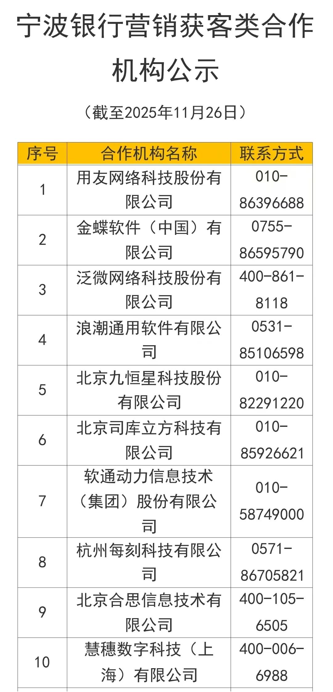 另外,寧波銀行披露的營銷獲客類合作機構名單顯示,截至2025年11月26日,該行營銷獲客類合作機構共369家。