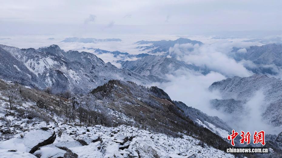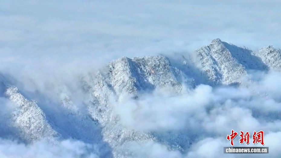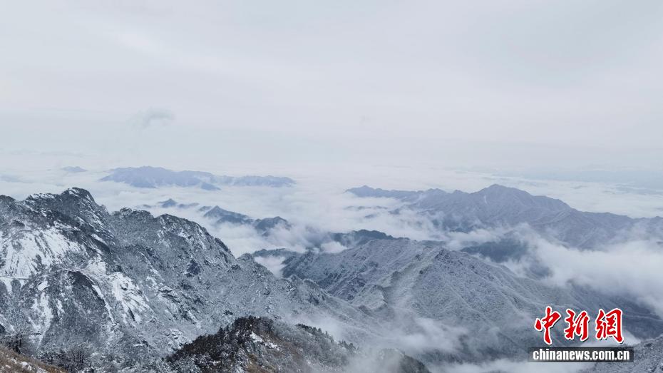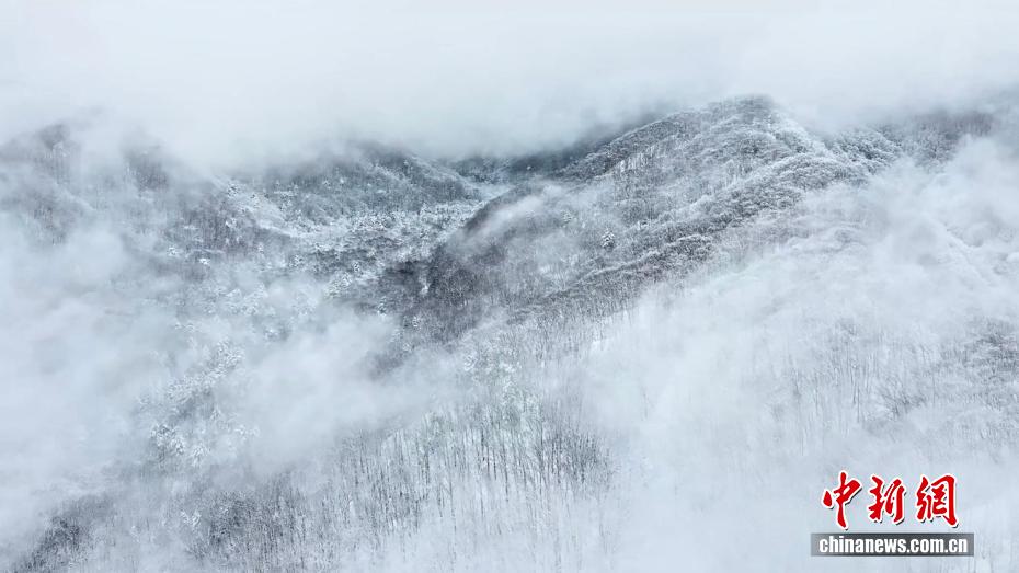 近日,陜西迎來降雪,位于秦嶺腹地的朱雀國家森林公園內,積雪點綴著山巒,與翻涌的云海交相輝映,美不勝收。圖為秦嶺山巒雪景迷人。