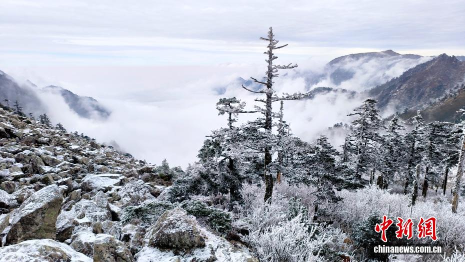 近日,陜西迎來降雪,位于秦嶺腹地的朱雀國家森林公園內,積雪點綴著山巒,與翻涌的云海交相輝映,美不勝收。圖為秦嶺雪景迷人。