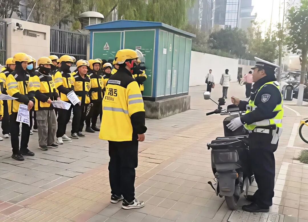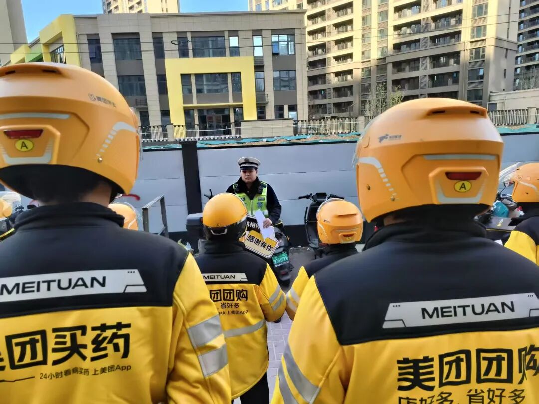 近日,交管五大隊組織民輔警深入美團外賣海洋館站點、美團外賣北三環站點、迎賓路站點、古滎站點等,面向轄區美團外賣一線騎手開展了針對性強、內容豐富的交通安全宣傳活動,切實筑牢外賣騎手的道路安全防線。