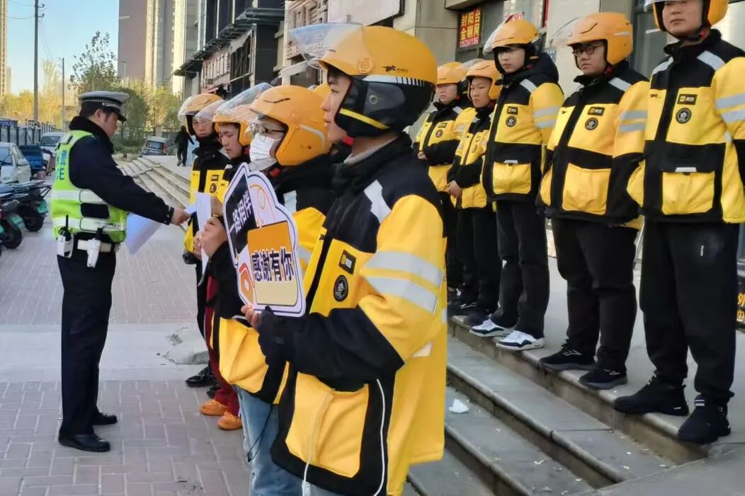 活動最后,民輔警倡導全體騎手樹立“安全第一、文明騎行”的理念,將交通安全意識融入每一次配送過程中,不僅對自己和家庭負責,更要為鄭州和諧暢通的交通環境貢獻寶貴力量,讓外賣配送成為城市里一道安全有序的風景線。