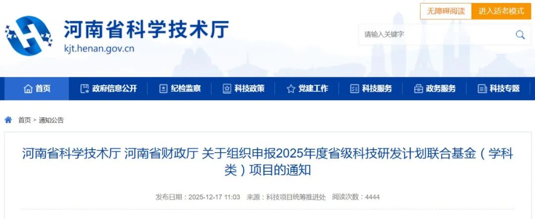 關于組織申報2025年度省級科技研發計劃聯合基金(學科類)項目的通知