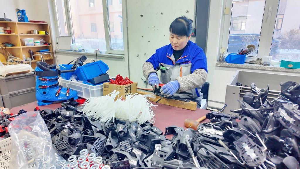 “分揀、擰螺絲、刷潤滑油、再用小錘輕輕一敲”——在哈爾濱乾卯雪龍體育用品有限公司的生產車間里,一個脫離器就這樣組裝完成。數名工人在明亮的白熾燈下,有條不紊地進行著每一道裝配工序。