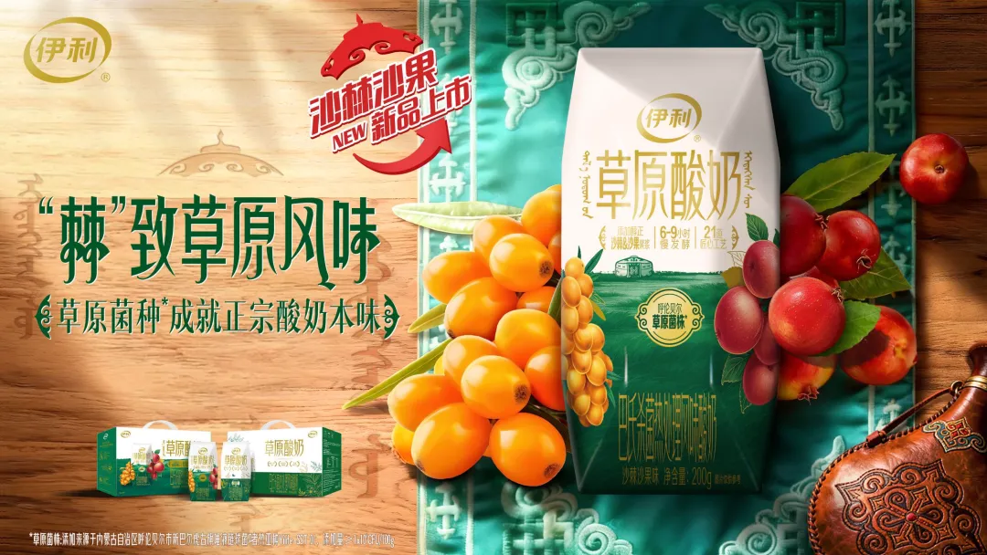 伊利草原酸奶沙棘沙果口味則將創新聚焦于呼倫貝爾草原菌種、發酵工藝搭配特色水果。其創新自研的草原菌種,實現了PH值的腸胃友好適配。同時,產品還甄選和林格爾沙棘與內蒙特色沙果,口味酸甜平衡,果味醇厚。這種“功能與風味兼具”的差異化解決方案,有助于渠道進一步擴充消費客群。