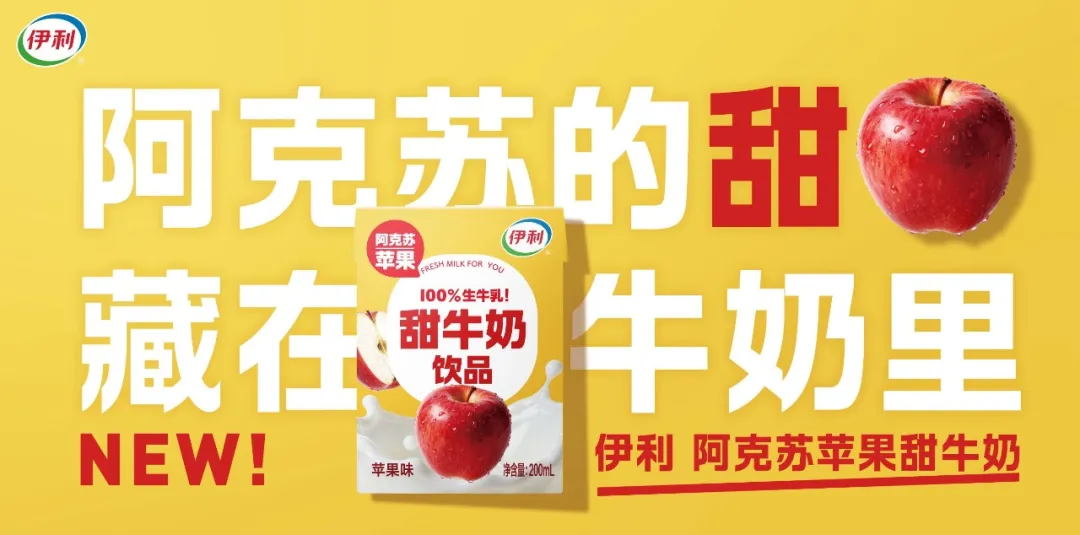 其中,伊利以阿克蘇蘋果甜牛奶為先鋒,布局區域定制化產品賽道。據介紹,產品特選阿克蘇蘋果打造當紅風味,將地域特色水果與牛奶融合,既借助阿克蘇蘋果的大眾認知度降低市場教育成本,又以區域定制化的思路,為不同地域市場打造專屬的“英雄單品”。