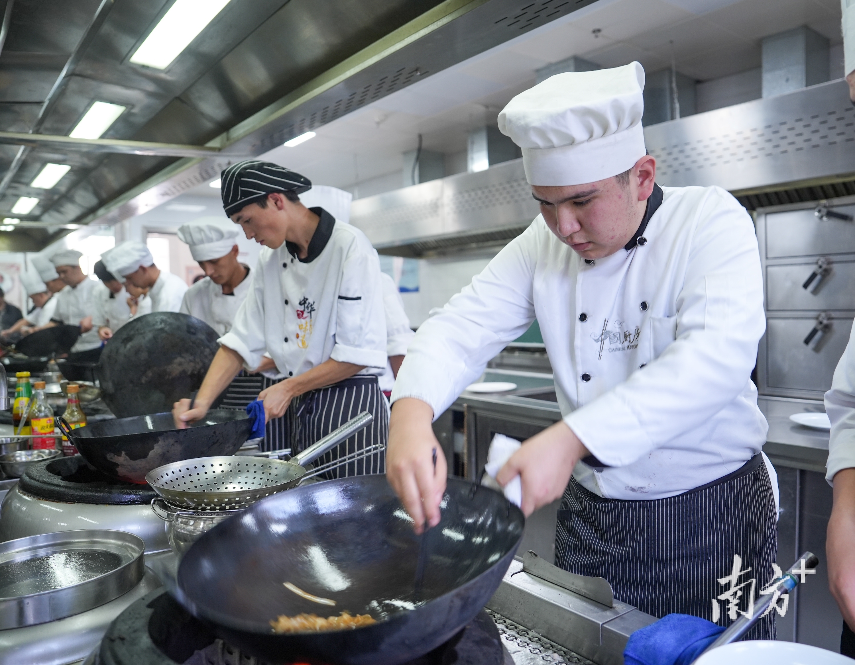 喀什技師學(xué)院粵菜學(xué)院是全疆首個粵菜人才搖籃。廣東援疆投入近400萬元,舉辦12期培訓(xùn)班,培養(yǎng)學(xué)員1694人次。廣東援疆教師林光輝帶領(lǐng)團隊,開發(fā)一批粵新融合菜,學(xué)員就業(yè)率100%,起薪高20%。