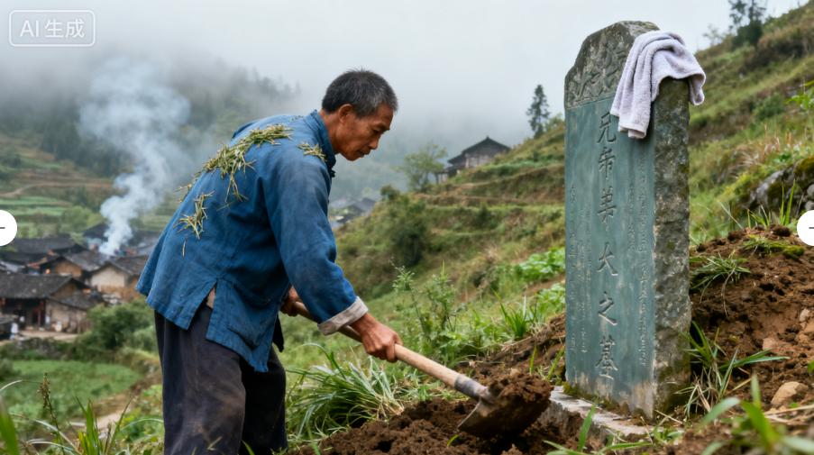 清理完雜草,培好新土,阿牛又拿出帶來的毛巾,仔細(xì)地擦了擦爹娘墳前的墓碑,把上面的灰塵都擦干凈。然后,他點(diǎn)燃了三炷香,插在墳前的泥土里,對著爹娘的墳塋恭恭敬敬地磕了三個頭,嘴里念叨著:“爹,娘,我來看你們了。我聽王道長的話,先給你們清理了雜草,培了新土,你們在地下安心住著。”