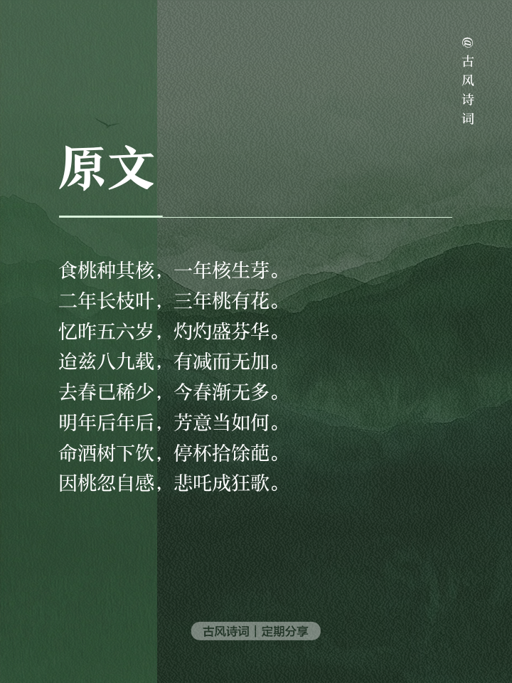 “食桃種其核,一年核生芽。二年長枝葉,三年桃有花。”詩的開篇,以近乎農書般平實的語言,勾勒出桃樹生長的自然周期。這種白描背后,是詩人從“江州司馬青衫濕”的悲情,向忠州“且謀眼前事”的務實生存狀態的轉變。