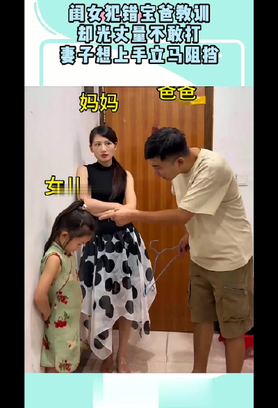 閨女犯錯寶爸教訓,卻光丈量不敢打,妻子想上手立馬阻擋!