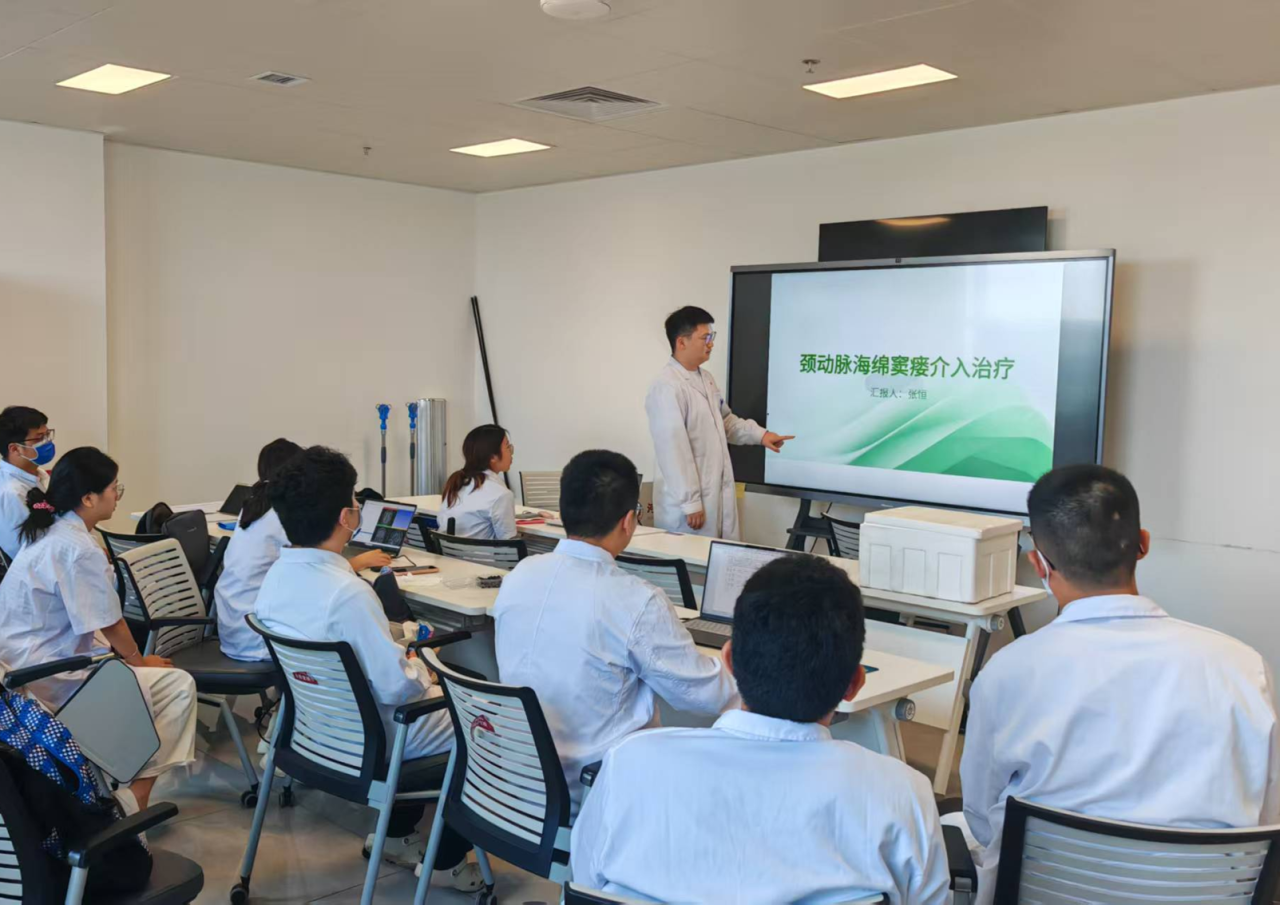 曾經,張恒還是個“遇到復雜腦血管病就發怵”的醫生。2024年,他申請到北院區進修,先跟著賀迎坤主任學理論,把“腦動脈狹窄的分型”背熟;再在模擬器上練穿刺、放支架,練到手不抖了,才能跟臺手術。