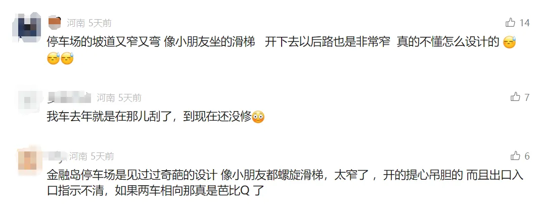 2、停車場設計不合理。無論是車道還是大門,設計的都太窄了,技術不到位就會撞上去。不少網友吐槽,自己的車都在停車場蹭過。