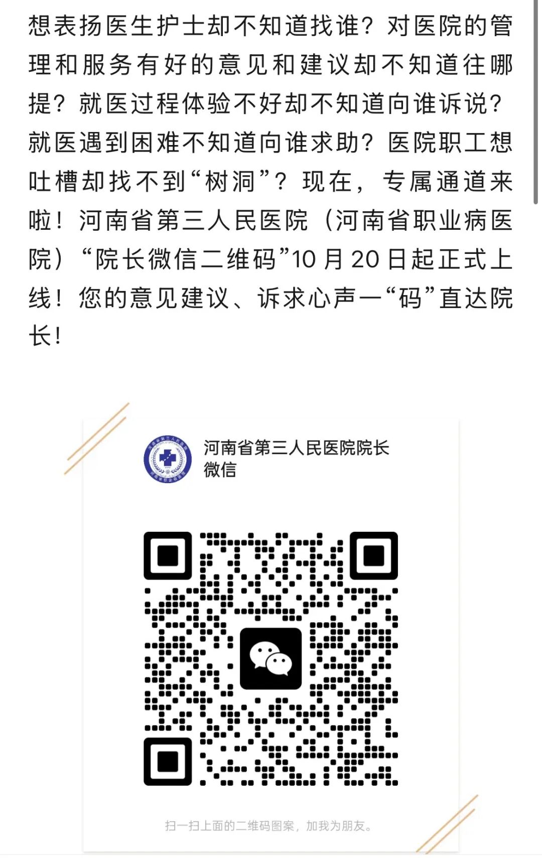 截至2025年9月,登封市人民醫(yī)院、滎陽市中醫(yī)院、盧氏縣婦幼保健院等20余家縣級醫(yī)院,均向社會公開院長個(gè)人微信或企業(yè)微信,群眾掃碼即可添加,直接反映就醫(yī)過程中的意見建議。