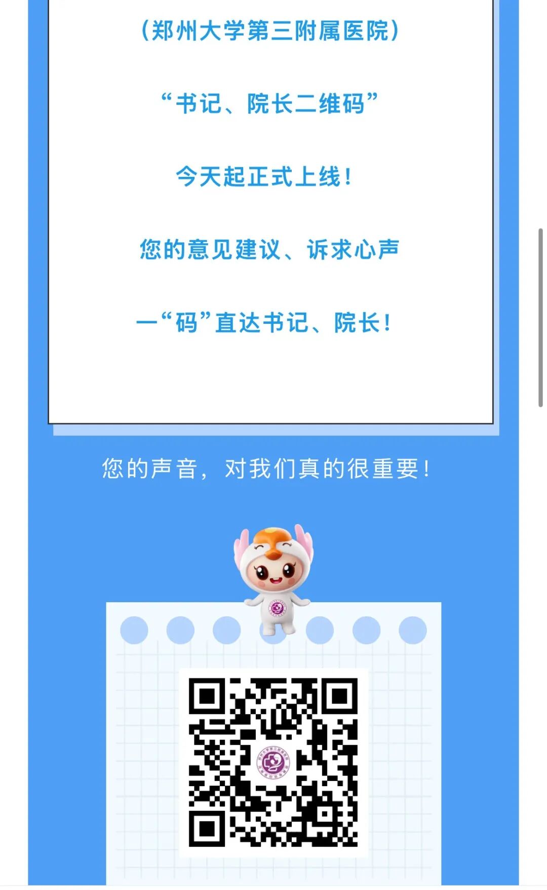 在省級醫(yī)院層面,鄭州大學(xué)第三附屬醫(yī)院于9月15日上線“書記、院長二維碼”通道,成為河南開通省級醫(yī)院“管理層直通車”的機(jī)構(gòu)之一。