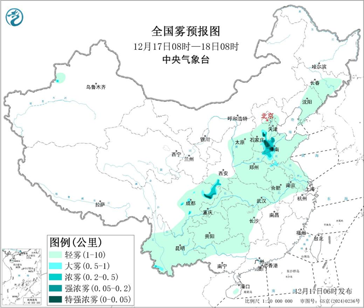 12月12—13日,我國經歷了立冬以來最大規模的雨雪天氣;伴隨大風降溫,空氣質量總體優良。14日起,隨著風力減弱,雪后近地面增濕且出現逆溫,空氣質量逐漸轉差,京津冀及周邊地區、長三角北部、湖北大部出現PM2.5污染。16日,廊坊、菏澤、安陽等10個城市PM2.5日均濃度達到中度污染水平;截至17日16時,PM2.5小時濃度峰值為185微克/立方米(安徽淮南,12月17日9時),達到短時重度污染水平。