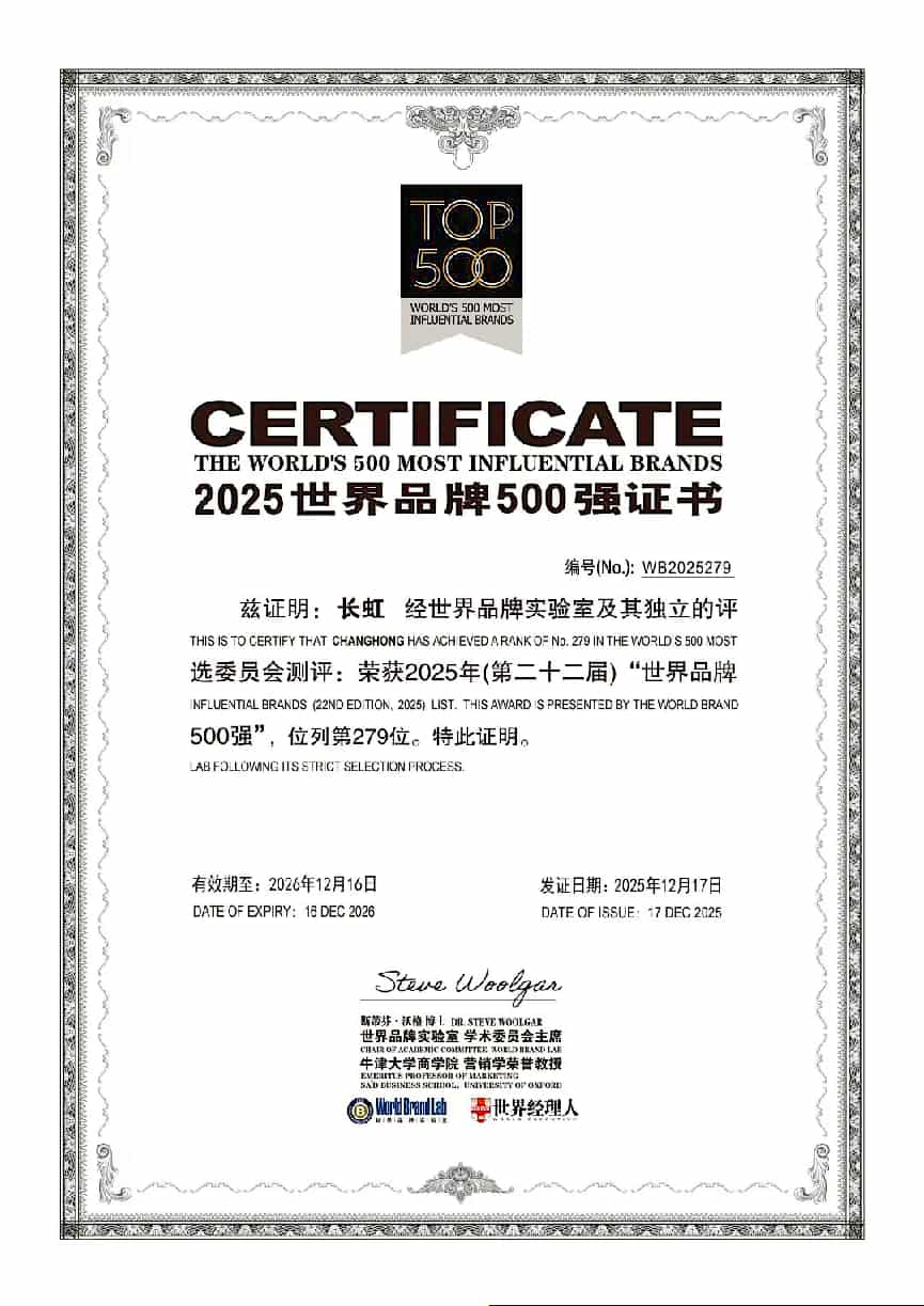 12月17日,世界品牌實(shí)驗(yàn)室(World Brand Lab)揭曉了2025年度(第二十二屆)《世界品牌500強(qiáng)》榜單,在這份匯聚全球頂尖品牌的權(quán)威榜單中,中國(guó)上榜品牌數(shù)量已達(dá)50個(gè),穩(wěn)居全球第三。其中,長(zhǎng)虹位列第279位,較2024年躍升4位。