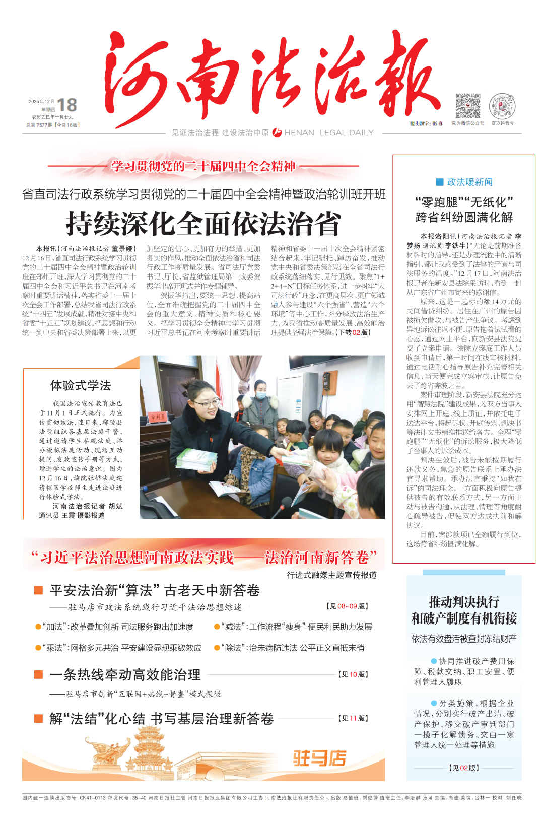 《河南法治報》頭版報道