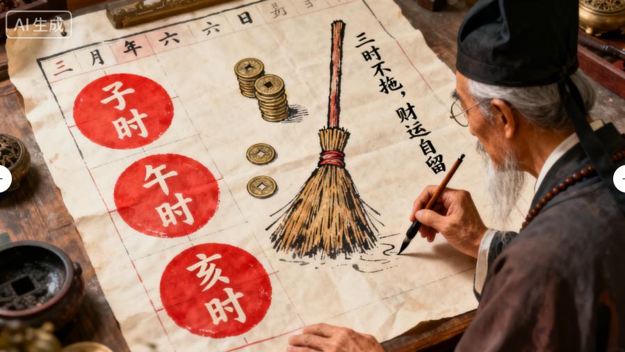 老道長點了點頭,說道:“這就對了。家中富不富,跟拖地有關。拖地看似是件小事,可要是選不對時辰,就會把家里的運氣拖走。尤其是這三個時辰,絕對不能拖地,否則會影響家庭運勢,導致錢財流失、災禍不斷。”李建國趕緊問道:“道長,是哪三個時辰啊?您快給我說說。”
