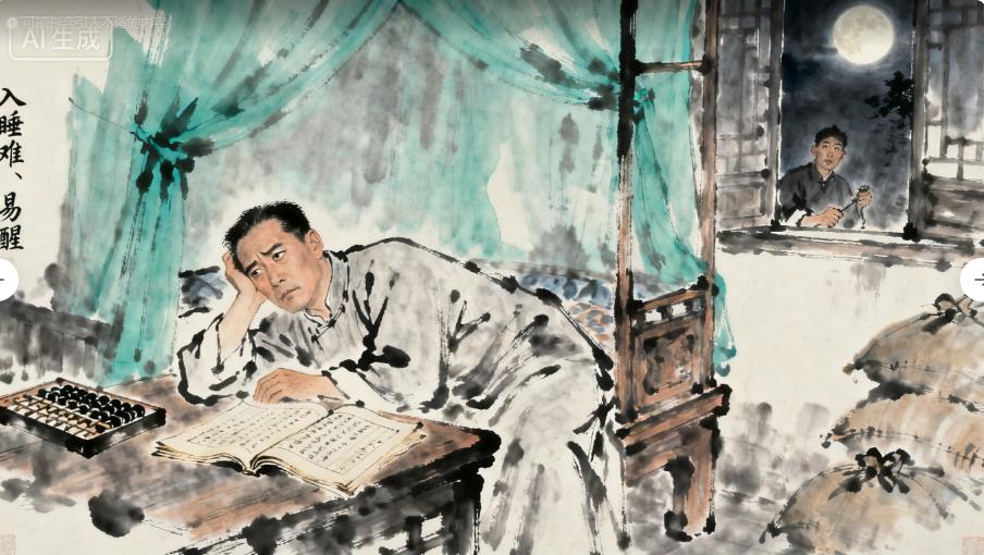 “可不是嘛!” 沈先生放下筆,給張掌柜倒了杯茶,“我行醫幾十年,見過不少像你這樣的人。有的商人,為了生意整夜盤算,不到五十就氣血虧空,最后撒手人寰;還有的官員,為了仕途焦慮難眠,沒幾年就得了不治之癥。人活一輩子,就像一盞燈,睡眠就是添油的過程,油添得不夠,燈自然亮不了多久。你這‘入睡難、易醒’,就是壽命短的第一個特征??!”