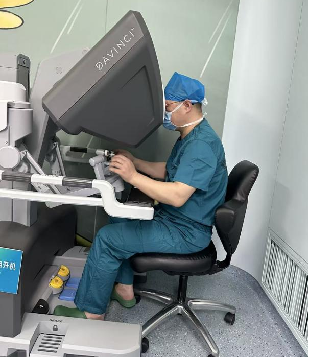 手術當日,張凱主任端坐于機器人控制臺前,通過?3D 高清立體視野(放大 10-15 倍)實時觀察手術區域,向機械臂發出精準指令。