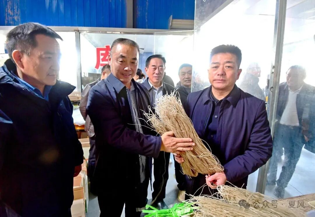 在夏邑縣長壽食品企業聯盟商會負責人的陪同下,徐州考察團一行先后走進何營鎮西濤養雞場、桑堌鄉大李莊粉條加工廠,細致了解特色農產品的養殖種植標準、生產加工工藝及市場銷售體系建設情況。