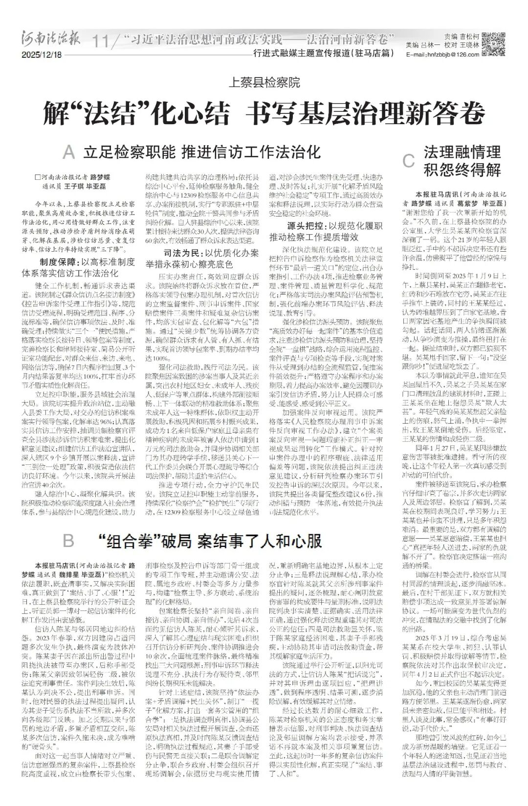 今年以來,上蔡縣檢察院立足檢察職能,聚焦高質效辦案,積極推進信訪工作法治化,用心用情做好群眾工作,注重源頭預防,推動涉檢矛盾糾紛消除在萌芽、化解在基層,涉檢信訪總量、重復信訪率、信訪上行率持續實現“三下降”。