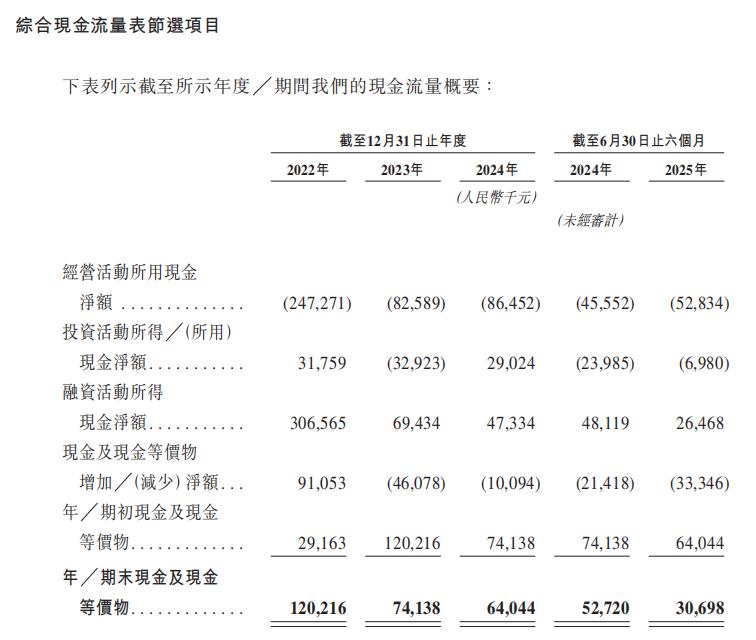 研發之外,據其招股書,主線科技的經營活動所用現金凈額在過去三年持續為負。