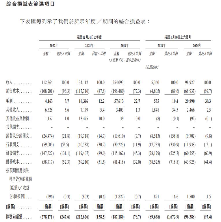 在這種結構下,即使毛利率階段性提升,也不足以掩蓋整體費用壓強所帶來的持續虧損。2025年上半年,其所得稅前虧損占收入比重為97.4%,在一定程度上表明毛利的增加尚未轉化為盈利的強驅動力。