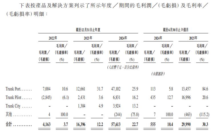 不過,主線科技招股書披露的各期收入占比變化顯示,Trunk Port曾在部分期間占據超過七成的收入份額,但到了2025年上半年,其占比驟降至16.1%;與此同時,Trunk Pilot從2022年的41.4%迅速上升至2025年上半年的83.5%,成為壓倒性主力。Trunk City的收入曾在2023年和2024年分別占到20.0%與11.7%,但在此后尚未產生任何收入。