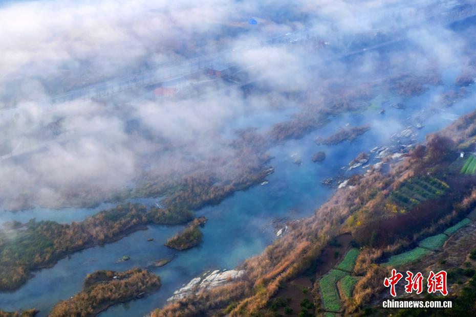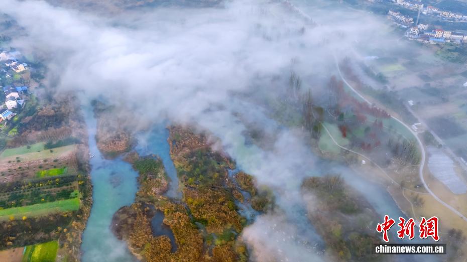 受河谷濕地冷暖氣流交匯影響,黃柏河生態濕地連日來出現平流霧景觀,宛如仙境。黃柏河位于湖北省宜昌市,是長江一級支流,也是三峽庫區生態屏障,以前由于礦山堆場沿河布設,水質一度惡化。近年來,當地統籌推進黃柏河水生態和水環境綜合治理,打造人與自然和諧共處的濕地生態體驗區,讓黃柏河重現碧波蕩漾的美景。圖為薄霧在黃柏河生態濕地漫舞流淌。