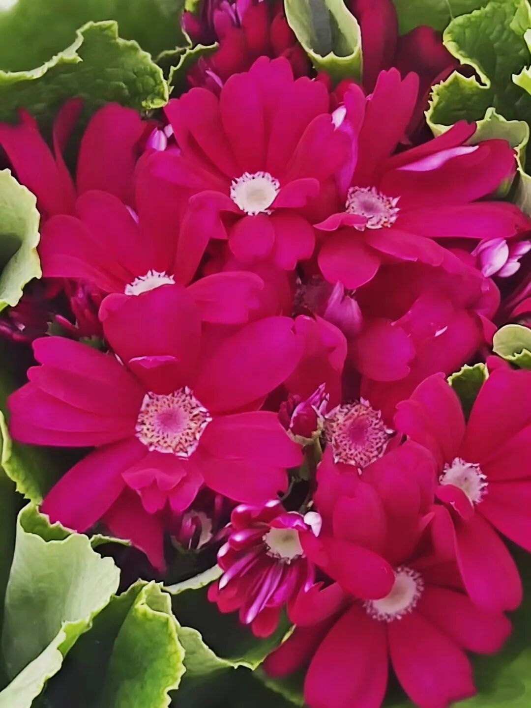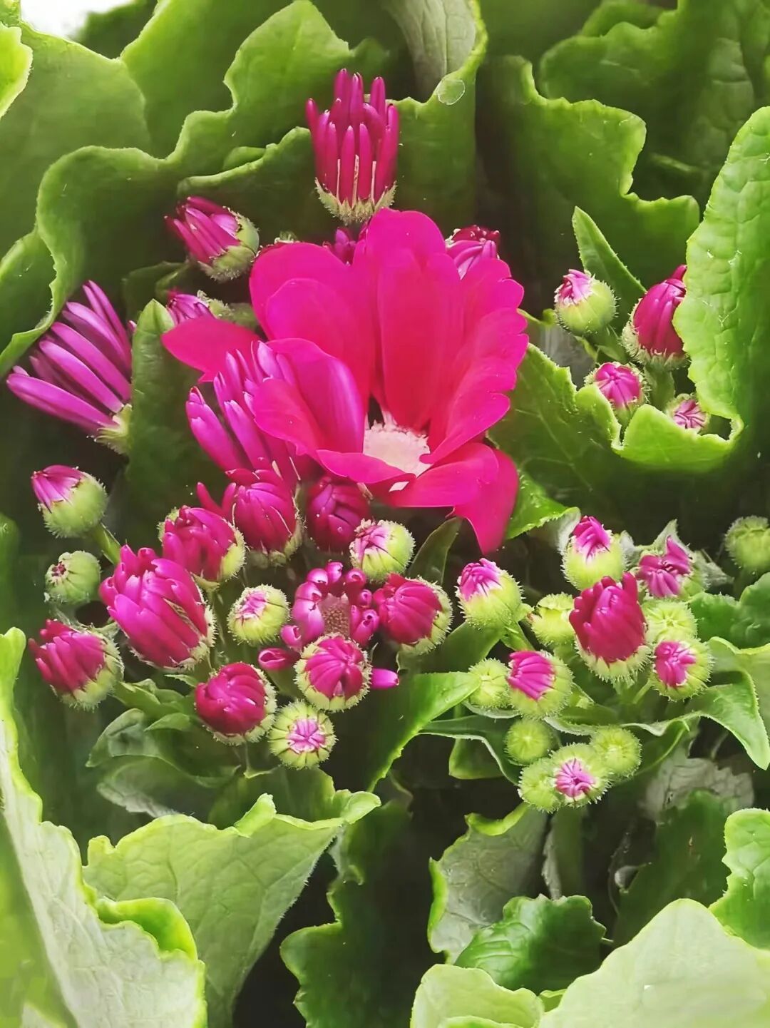 這份歡騰,是溫室里的“馴養的春天”。瓜葉菊原屬地中海沿岸,天性喜溫暖、愛光照,又不耐酷寒與強風。我們的祖先用智慧為它建造了玻璃的宮殿——溫室,讓它在北方的寒冬里,也能安然綻放。于是,它從山野的精靈,變成了節日的信使。從圣誕節到春節,再到元宵,它都是花卉市場當之無愧的“寵兒”。人們將它捧回家,置于窗臺、案頭,那一片絢爛,瞬間便能點亮整個室內的氛圍。它不像水仙需要雕刻的雅趣,也不似臘梅帶著冷冽的幽香,它就是那么直白、熱烈、飽滿地盛開著,用最直觀的視覺語言,宣告著對寒冬的抵抗,對生機的禮贊。