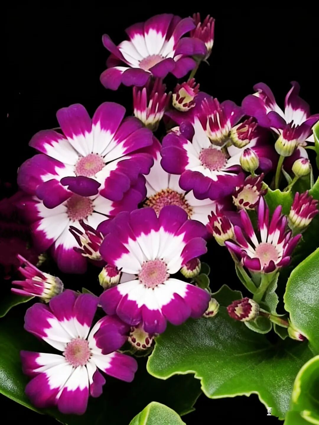 但瓜葉菊最令人心折的,還是它那近乎奢侈的色彩揮霍。它不是含羞地開著某一色,而是像一個被春天寵壞的畫師,打翻了所有顏料罐子。你看那花瓣:有純凈如初雪的“北極光”,有嬌嫩似少女臉頰的“春緋”,有熱烈如熔爐之火的“朱焰”,更有那神秘如暮色氤氳的“紫霧”。最奇的是那些復色品種,一瓣之上,從蕊心的奶黃過渡到瓣緣的深玫紅,或是由淡紫暈染成淺藍,像是把朝霞與夕嵐的漸變,凝固在了一朵花上。一盆之中,各色雜陳,卻毫無雜亂之感,反顯出一種節日的、喜氣洋洋的熱鬧。它不是“疏影橫斜”的孤高,而是“姹紫嫣紅開遍”的慷慨與歡騰。