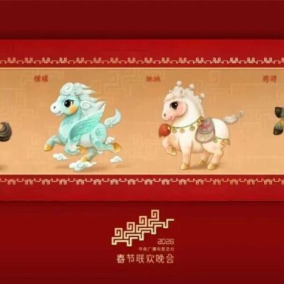 四匹駿馬齊亮相,騏驥馳騁踏新程!12月18日,中央廣播電視總臺《2026年春節聯歡晚會》發布吉祥物形象。“騏騏”“驥驥”“馳馳”“騁騁”四匹駿馬,活潑可愛、意氣風發,與晚會主題“騏驥馳騁 勢不可擋”一脈相承、相得益彰。吉祥物的設計靈感來源于中國不同時期馬的經典形象,并將流云紋、山云紋等千年紋樣“穿”上身,充盈著生生不息的歷史美感和萬象更新的時代氣象,飽含馬到成功、前程似錦的美好寓意。