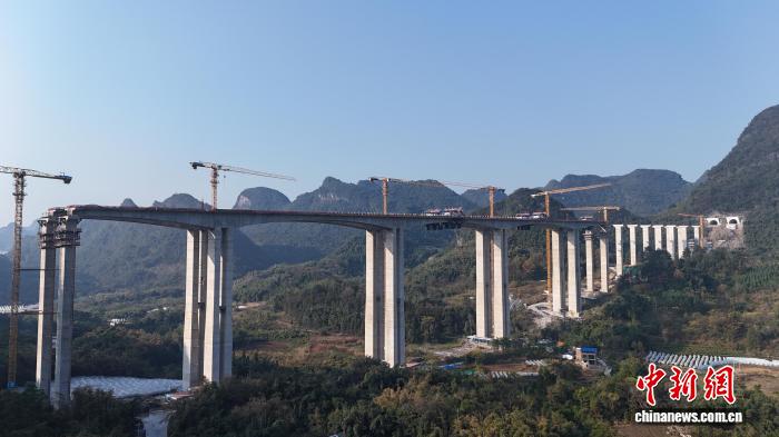 中新網南寧12月18日電 (覃宇 崔晶晶 林潔琪)12月18日,在中建二局融福高速公路項目建設現場,隨著最后一立方米混凝土注入接縫,全線控制性工程桐木河特大橋如一對伸展已久的鋼鐵臂膀,在百米高空穩穩“握”為一體,成功實現主橋合龍。