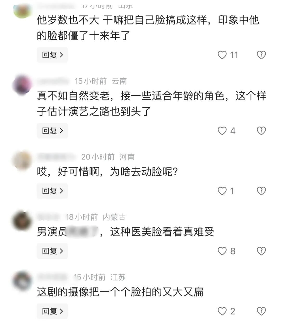 不少觀眾直言,當他出現在鏡頭中時,臉部顯得“饅化”和僵硬,表情不自然,這種醫美臉看著真難受。腫脹僵硬的臉龐,很難和記憶里儒雅倜儻的“民國第一小生”李宗翰聯系起來。不是看演員表,壓根不容易想到是同一個人。