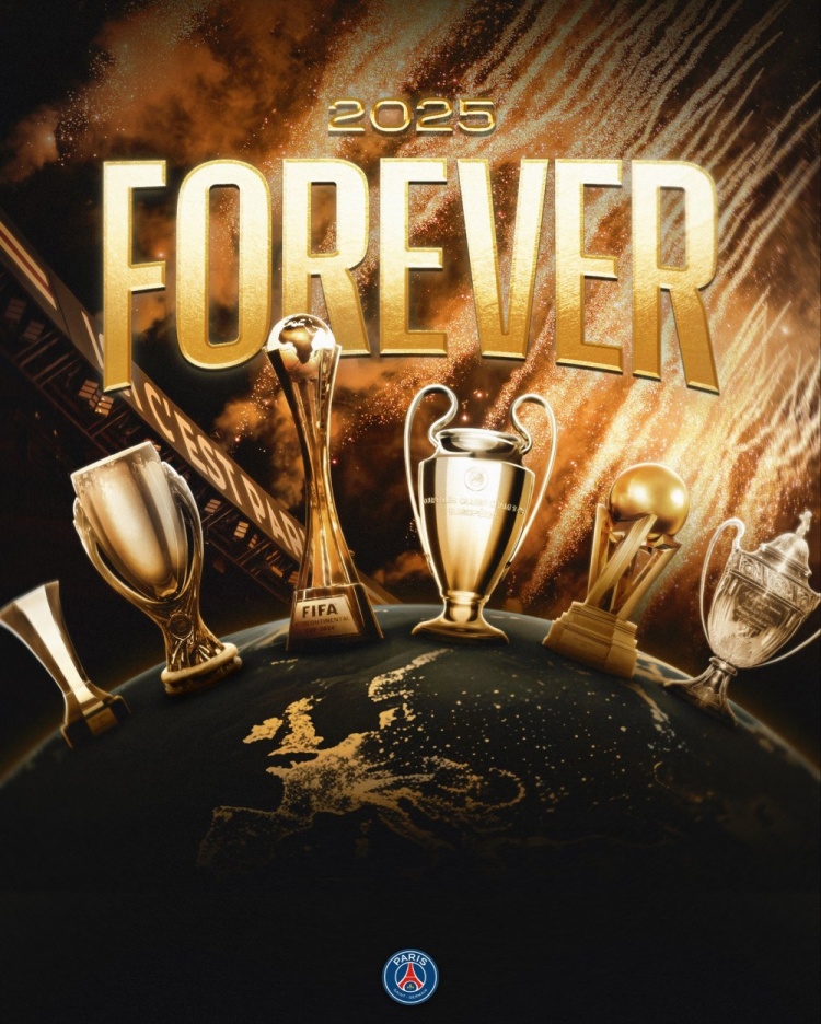 巴黎圣日耳曼官方社交媒體上,一張海報靜靜綻放。六座獎杯熠熠生輝,簇擁著“永恒的2025年”這行宣言。在數字時代的信息洪流中,體育俱樂部的一則帖子本應如浪花般轉瞬即逝,但“永恒”這個詞卻讓它產生了奇異的重量。這不僅僅是一張慶祝海報,它觸碰了現代體育文化中一個深刻的悖論:在瞬息萬變的競技世界里,我們如何理解“永恒”?