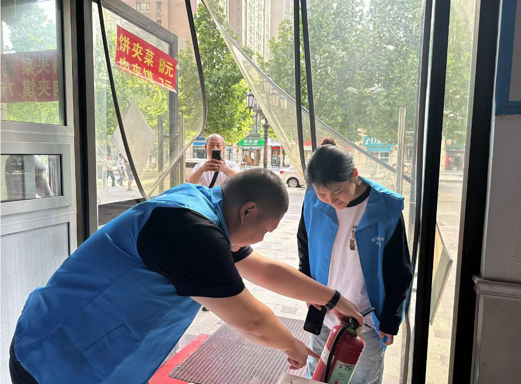 網格員深入商鋪開展消防巡查