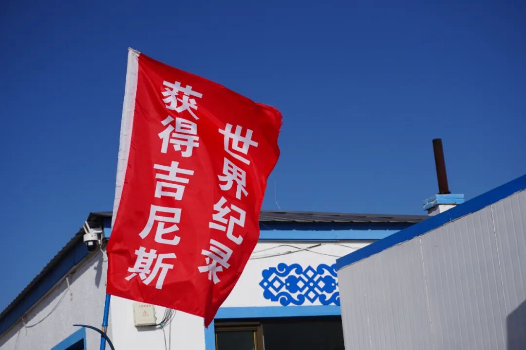 民心奶食品加工廠豎著的“獲得吉尼斯世界紀錄”的旗子