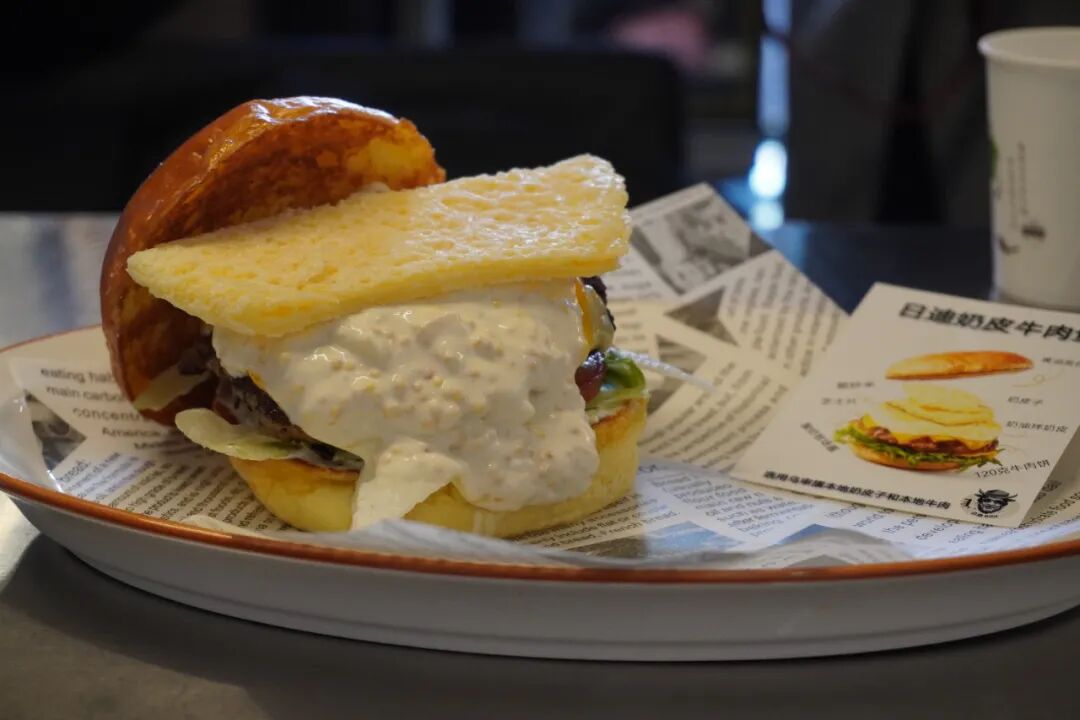 研發奶皮子披薩的烏拉,也在經歷這場充滿奶香味的付出與收獲。烏拉經營一家招牌叫“額優”的餐廳,蒙語含義是“富饒”。2019年,他開始研發蒙西結合的菜式,所有食材用的都是當地的奶制品和肉制品。額優每天下午三點開張,最近幾日,來店里上班之前,烏拉都在家里研究怎么用當地的羊肉和“奶嚼口”做漢堡,在呼和浩特,類似的本地化漢堡不僅售出高價,而且排隊才能買到。