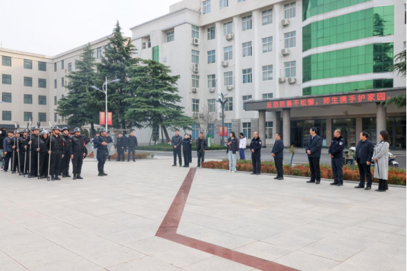 活動啟動儀式上,西流湖派出所所長楊忠印結合派出所反恐防恐工作實踐,分享了實戰經驗做法,高度肯定校地共建“警校協同”機制在凝聚反恐合力、織密安全防護網中發揮的重要作用,呼吁師生與公安機關攜手并肩,共同筑牢校園安全屏障。高校副校長常新中深刻剖析了恐怖主義的現實危害,闡明校園反恐普法教育對于守護師生生命財產安全、維護校園穩定秩序的重要意義,并對活動開展提出具體要求。隨后,高校黨委書記閆俊山正式宣布活動開幕。