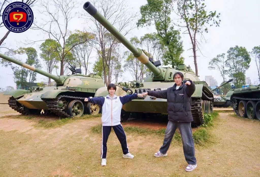 12月12日上午,福建三明永安九中研學團學生打卡南昌軍事主題公園。 校方供圖