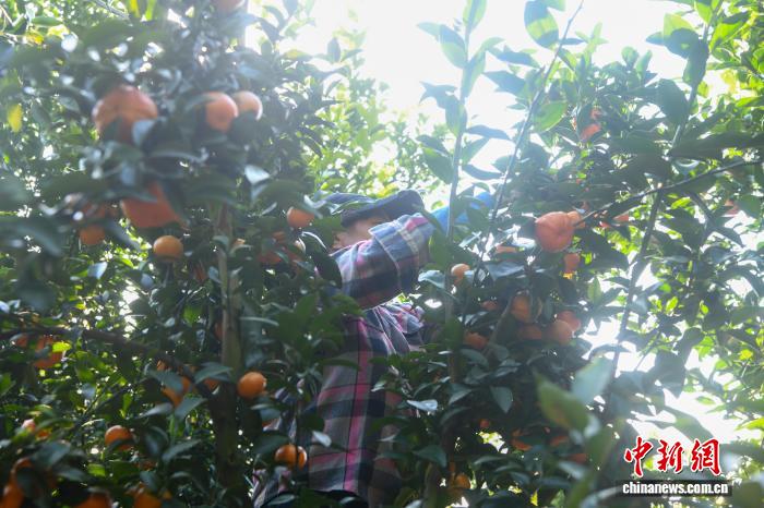 圖為果農(nóng)穿梭在果林里采摘沙糖桔。 龍家合 攝