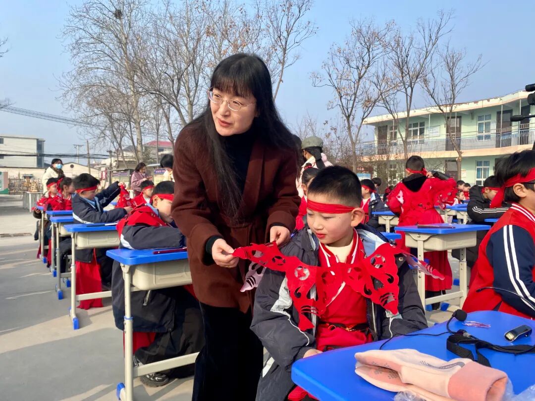 最熱鬧的環節當屬現場剪紙創作,百余名學生坐在藍色課桌椅前,手持紅紙與剪刀,專注地裁剪紋樣,紅紙在指尖翻飛,化作栩栩如生的圖案。省級非遺項目衛濱區剪紙得傳承人楊慶鋒老師也參與其中,現場示范剪紙技巧,手把手指導學生,讓孩子們在動手實踐中感受剪紙藝術的魅力。