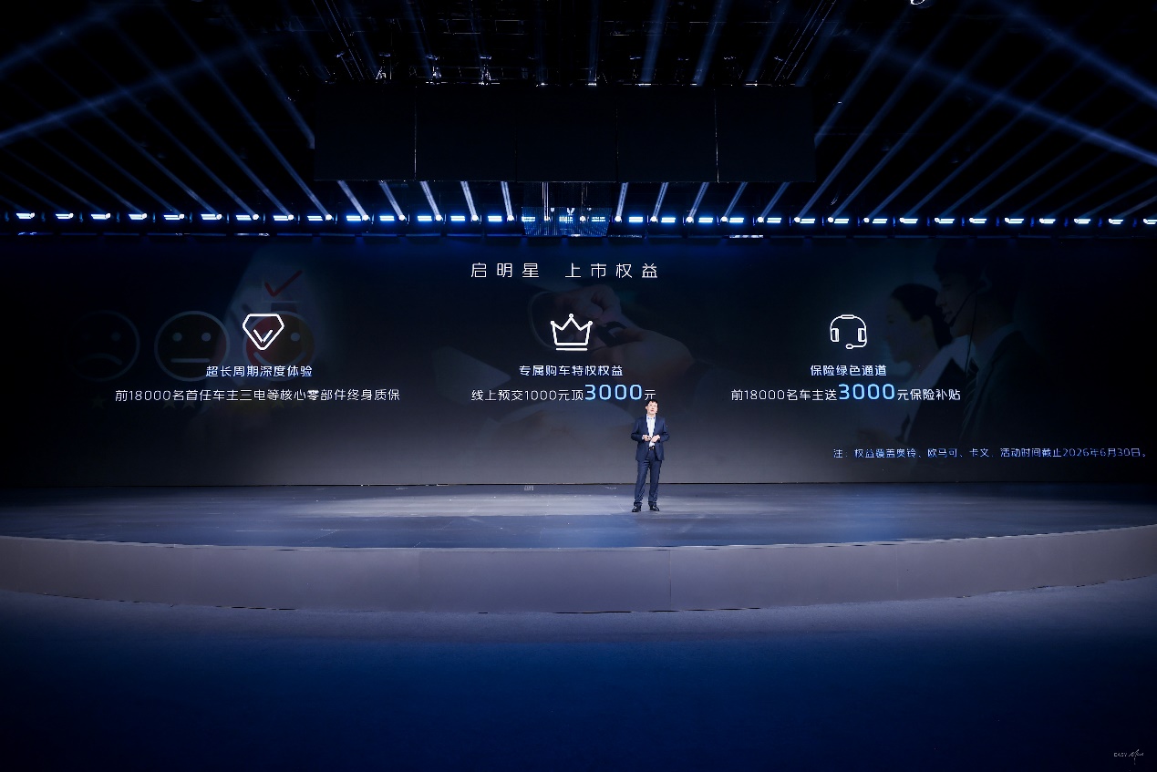 價格方面,啟明星二級踏步車型提供標(biāo)頂、高頂雙版本,電池覆蓋100-165度規(guī)格,搭載2C超充技術(shù)與三種碳化硅油冷高效電機(jī),上市價16.88萬元起;啟明星一級踏步低入口車型入口高度僅470mm,配合1.88米標(biāo)頂駕駛室,空間開闊通透;配備100-140度電池與2C超充技術(shù),上市價17.09萬元起。同時推出三重上市專屬權(quán)益,權(quán)益一:前18000名首任車主,可享三電等核心零部件終身質(zhì)保,養(yǎng)車、用車更省心;權(quán)益二:線上預(yù)交1000元,購車直接抵扣3000元,輕松省下購車成本;權(quán)益三:前18000名購車車主,直接贈送3000元保險補(bǔ)貼,用車更安心。以上權(quán)益在2026年6月30日前有效,先到先得,可疊加享受。