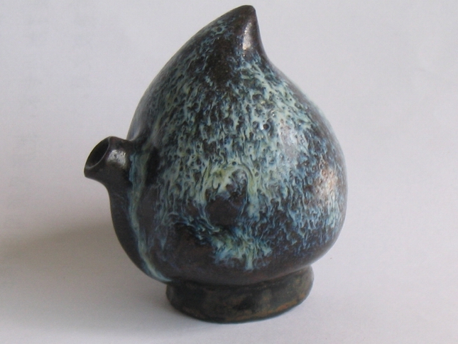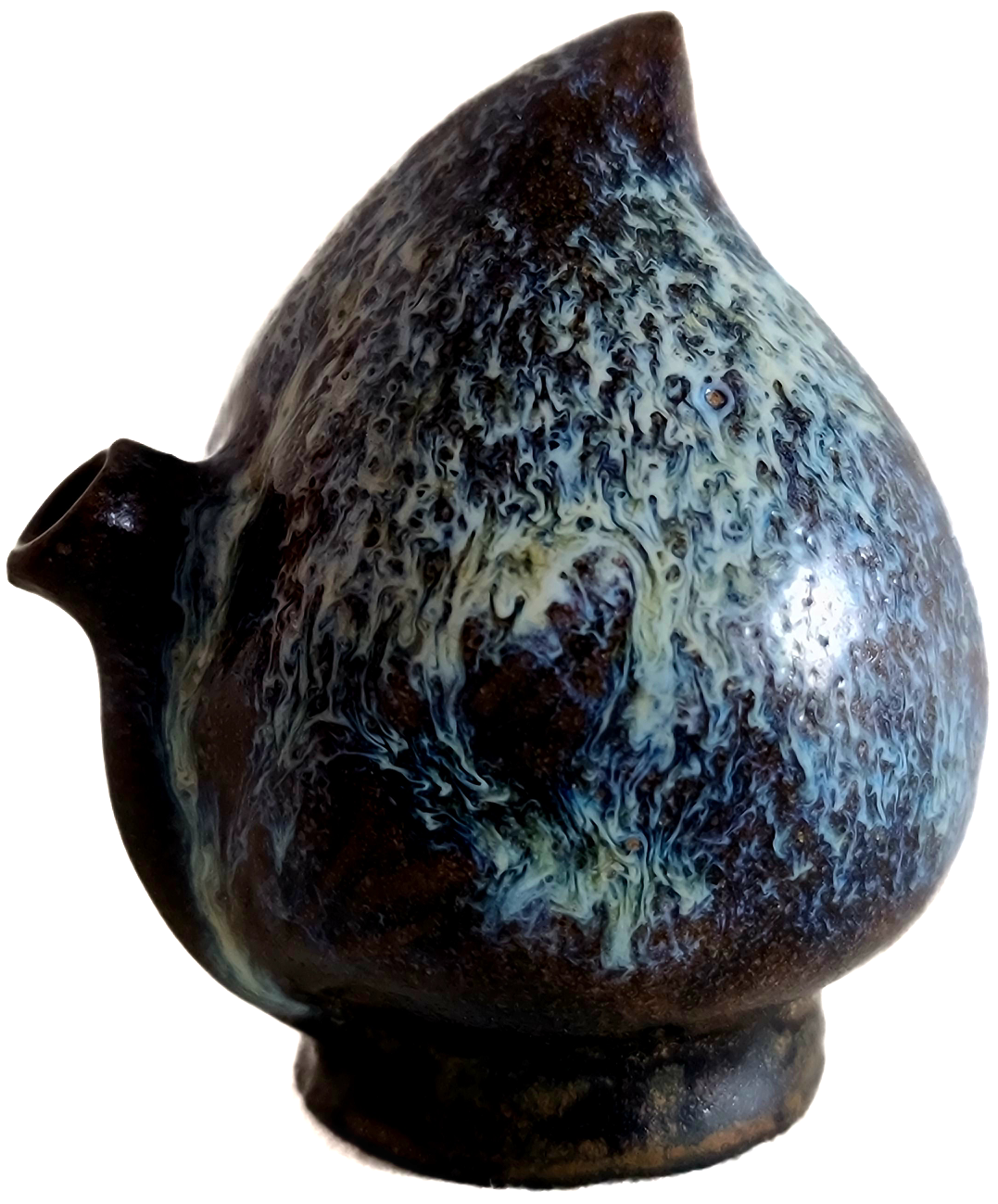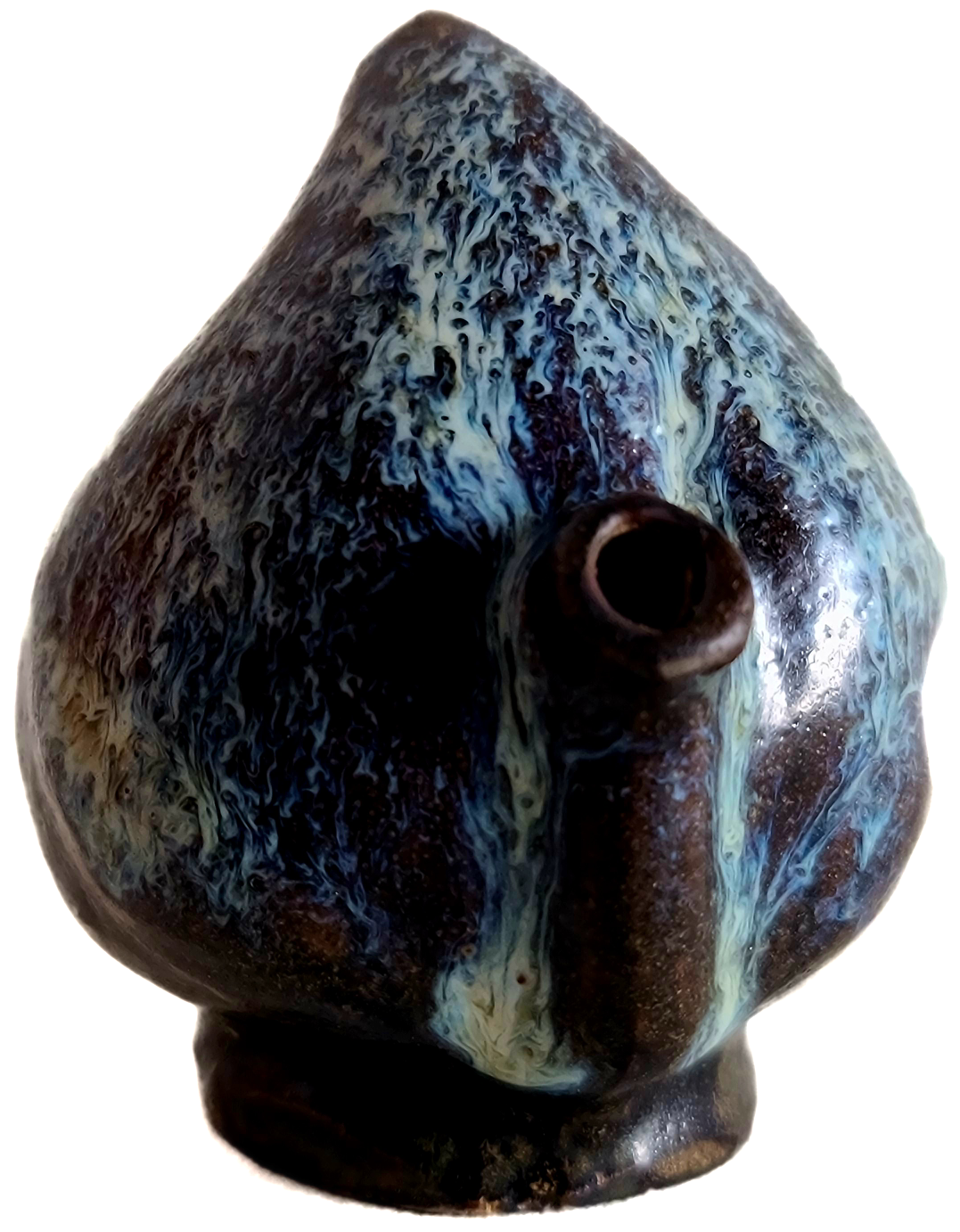 這件硯滴的釉色屬于早期的“分相乳光釉”,呈現出天藍基調中自然流動交融的窯變效果。這標志著中國高溫顏色釉技術從唐代“南青北白中原花”的瓷器釉色格局,向宋代“入窯一色,出窯萬彩”的絢麗窯變邁出了革命性的一步。它直接開啟了北宋鈞窯以銅紅釉為代表的、更加豐富多彩的窯變藝術,在中國陶瓷工藝和美學史上具有劃時代的意義。
