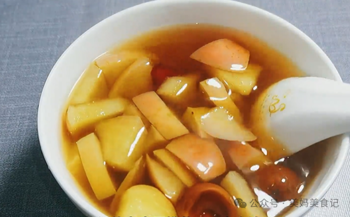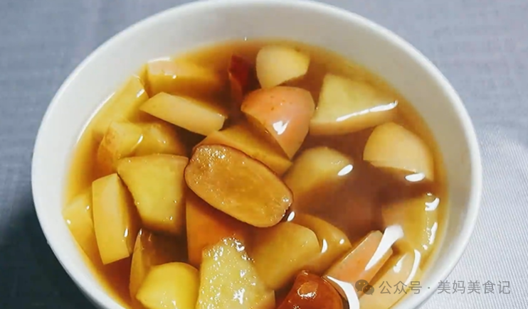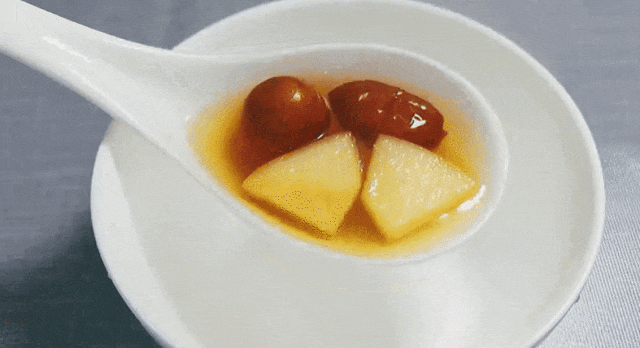 湯放溫至40℃再喝,防燙腸胃。桂圓剝殼吃果肉,蘋果、紅棗也可同食,酸甜軟糯,老人小孩都愛喝。