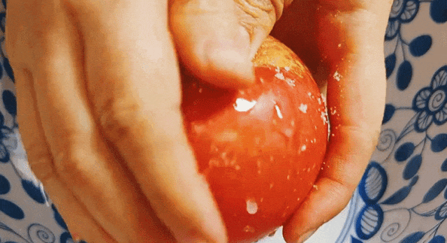 蘋果沾水撒鹽,搓1分鐘去蠟質雜質,清水沖3遍。蘋果切4瓣,挖去果核及周圍果肉(含微量氫氰酸,吃多易頭暈),切0.5厘米薄片,別泡水防維生素流失。